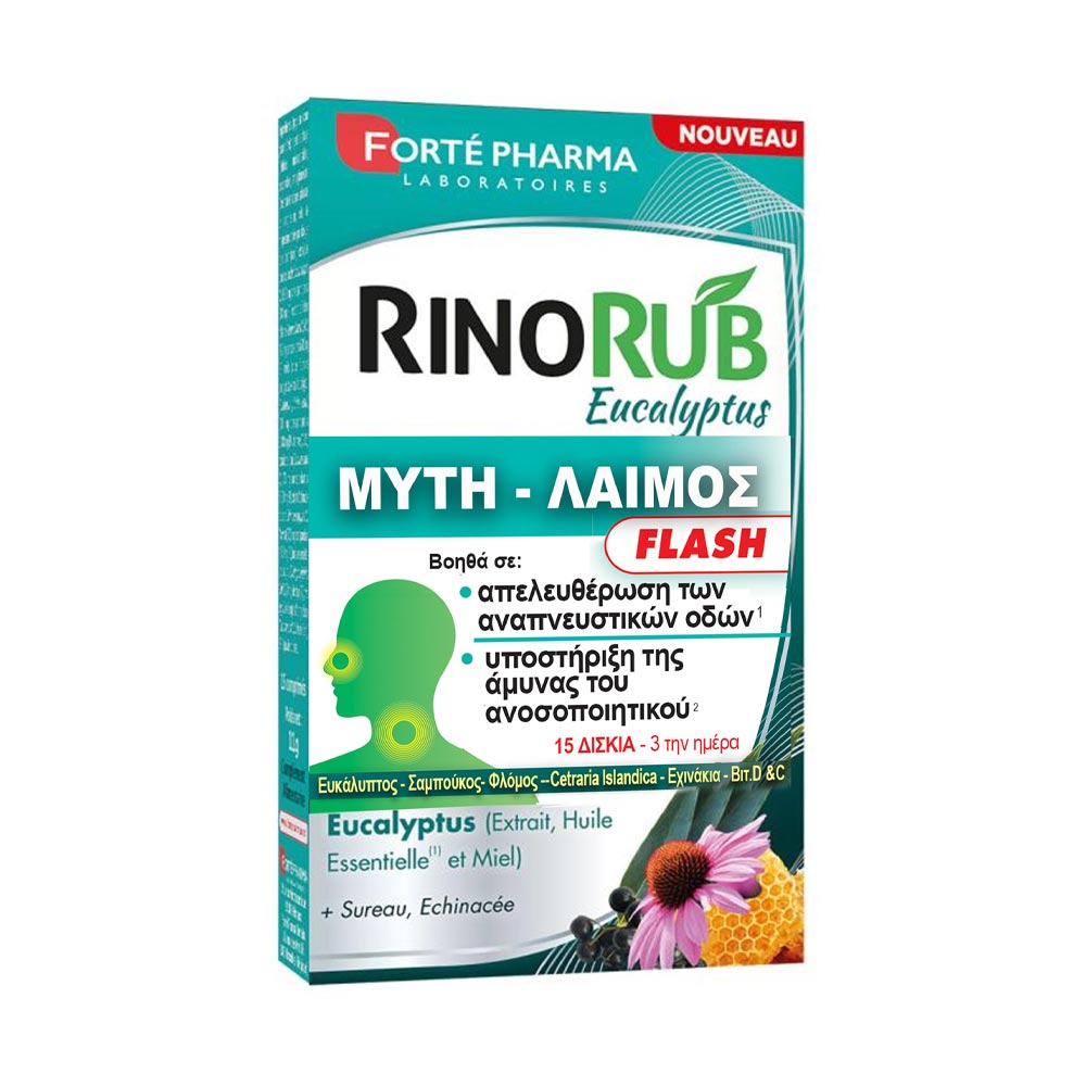 Η φόρμουλα των ταμπλετών RinoRub Flash ΜΥΤΗ-ΛΑΙΜΟΣ , της Forté Pharma περιέχει :