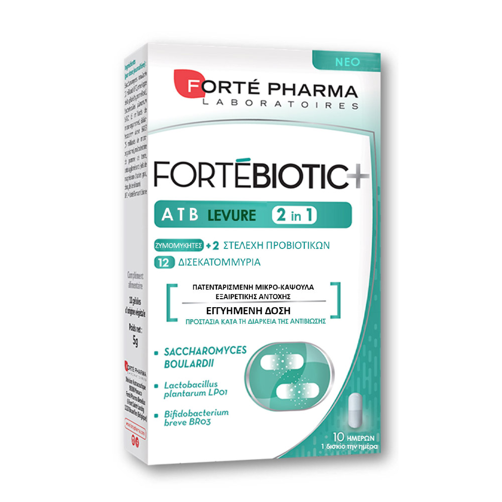 Το FortéBiotic +Flore συνδυάζει 5 προβιοτικά στελέχη αυστηρά επιλεγμένα & προστατευμένα σε μικροθύλακες, με ζωντανούς μικροοργανισμούς οι οποίοι αλληλεπιδρούν με τα κύτταρα του πεπτικού για να δημιουργήσουν μια ισχυρή αποικία ωφέλιμων βακτηρίων.